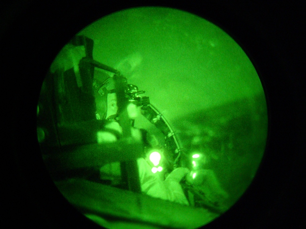 With the sun setting behind us, we were both in the process of getting our our Night Vision Goggles from our kits, and putting electrical tape over all the warning lights to keep them from inadvertently destroying our night vision with the goggles. It was better to just block them out with tape than have them flash and keep us from seeing.