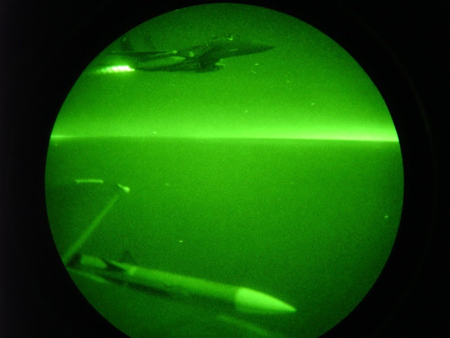 I was watching the D-F-U-A director lights in those two long light bars under the KC-135, wiggling my fingers and toes in preparation, and quietly muttering the 'Don't F Up, A' mnemonic to myself to tell myself to follow the indicators. I referenced those two lines of moving "Down Forward Up Aft" lights to drive my jet in close and keep steady position under the tanker.
